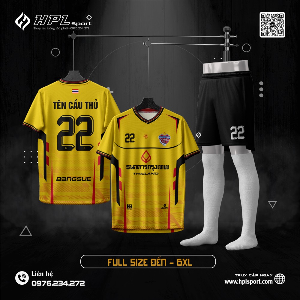 Với sắc vàng tươi rực rỡ kết hợp thiết kế thể thao mạnh mẽ, bộ áo đấu HPL không chỉ tạo ấn tượng trên sân mà còn mang đến sự thoải mái tối đa cho người mặc.