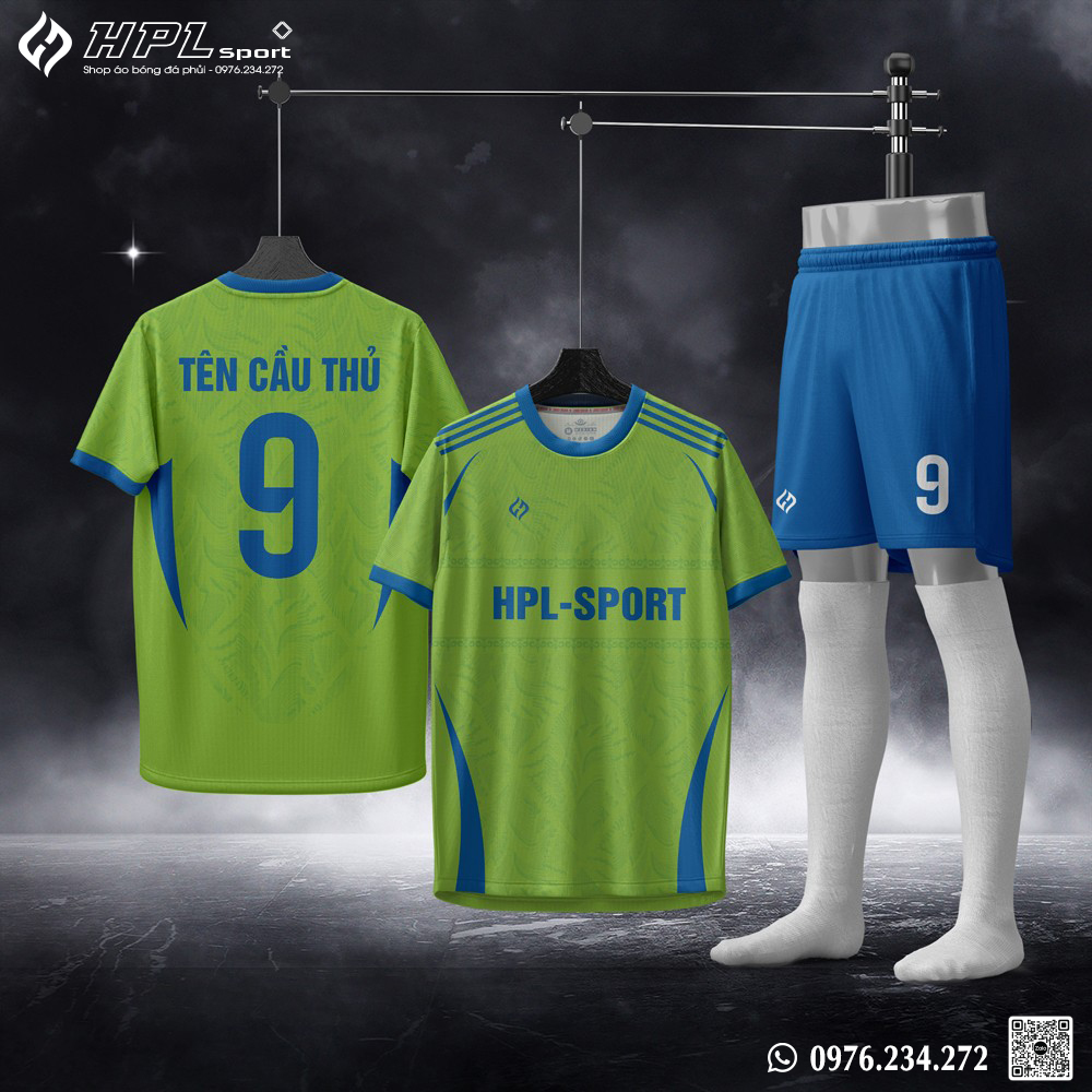 Mẫu áo bóng đá này lựa chọn màu xanh lá chuối non làm chủ đạo, tạo cảm giác tươi trẻ, tràn đầy năng lượng trên sân cỏ. Màu sắc tượng trưng cho sự phát triển và bền bỉ, phản ánh tinh thần thể thao đầy nội lực. Kết hợp hài hòa cùng màu xanh dương đậm ở tay áo, logo và quần thi đấu mang đến vẻ chuyên nghiệp và nổi bật. Điểm nhấn tinh tế đến từ vớ trắng, giúp bộ trang phục cân bằng màu sắc, tăng tính thẩm mỹ.
