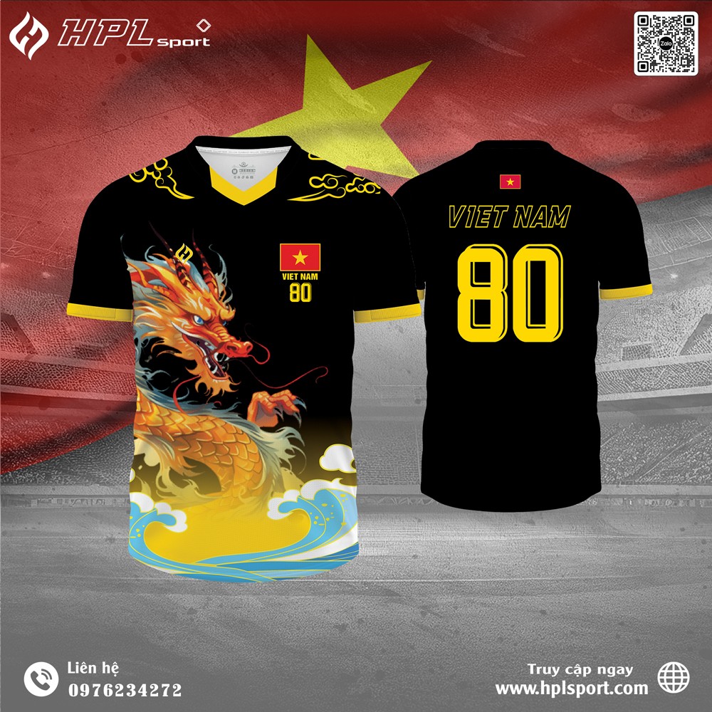 Áo bóng đá nam màu đen in hình rồng mạnh mẽ – Thể hiện khí chất Việt